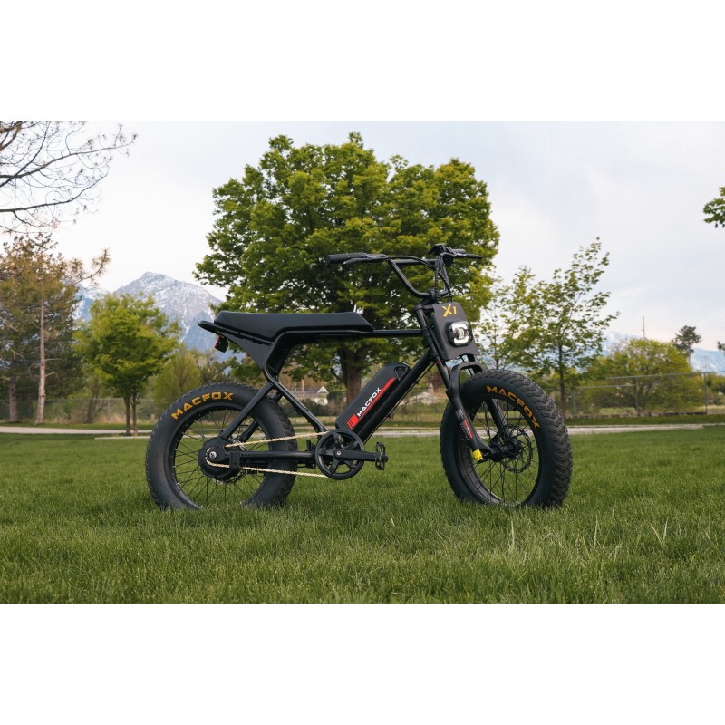 The Black Macfox X1 brings together classic styling and modern electric performance. With its matte black finish and vintage-inspired frame, this eBike delivers a bold, low-profile look while offering a smooth, powerful ride through city streets, bike paths, or light trails.